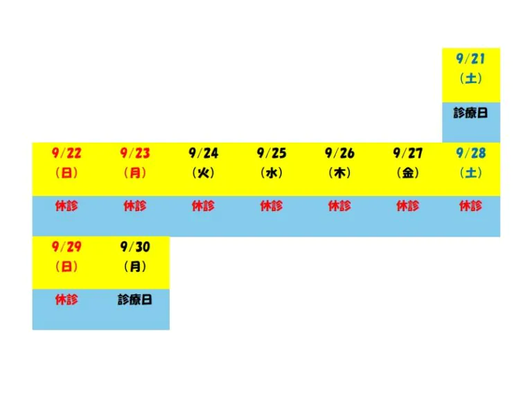 【夏季休診のお知らせ】9/22(日)~9/29(日)はクリニックが休診となります。皆様には大変ご不便をおかけしますが、ご理解を賜りますよう何卒よろしくお願い申し上げます。 event_note2024.06.20 9/22(日)~9/29(日)はクリニックが休診となります。 皆様には大変ご不便をおかけしますが、ご理解を賜りますよう 何卒よろしくお願い申し上げます。 横須賀大津駅前クリニック